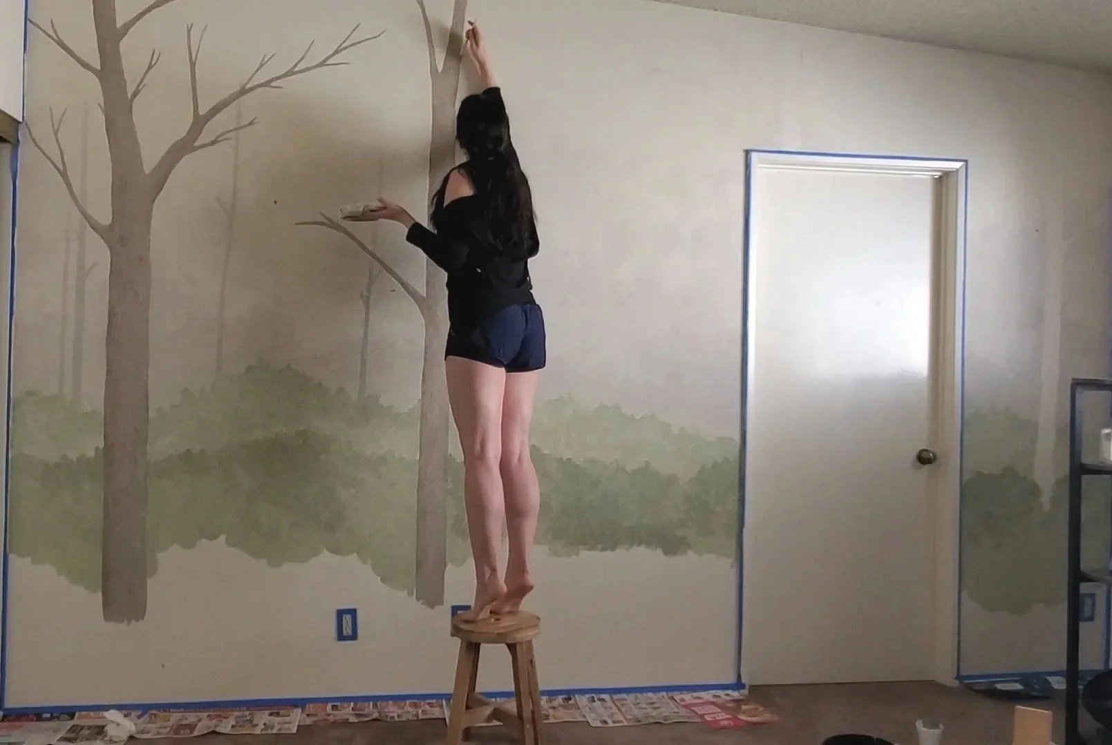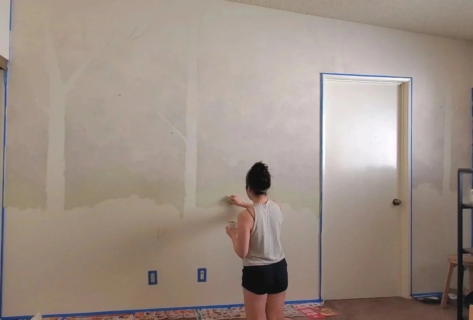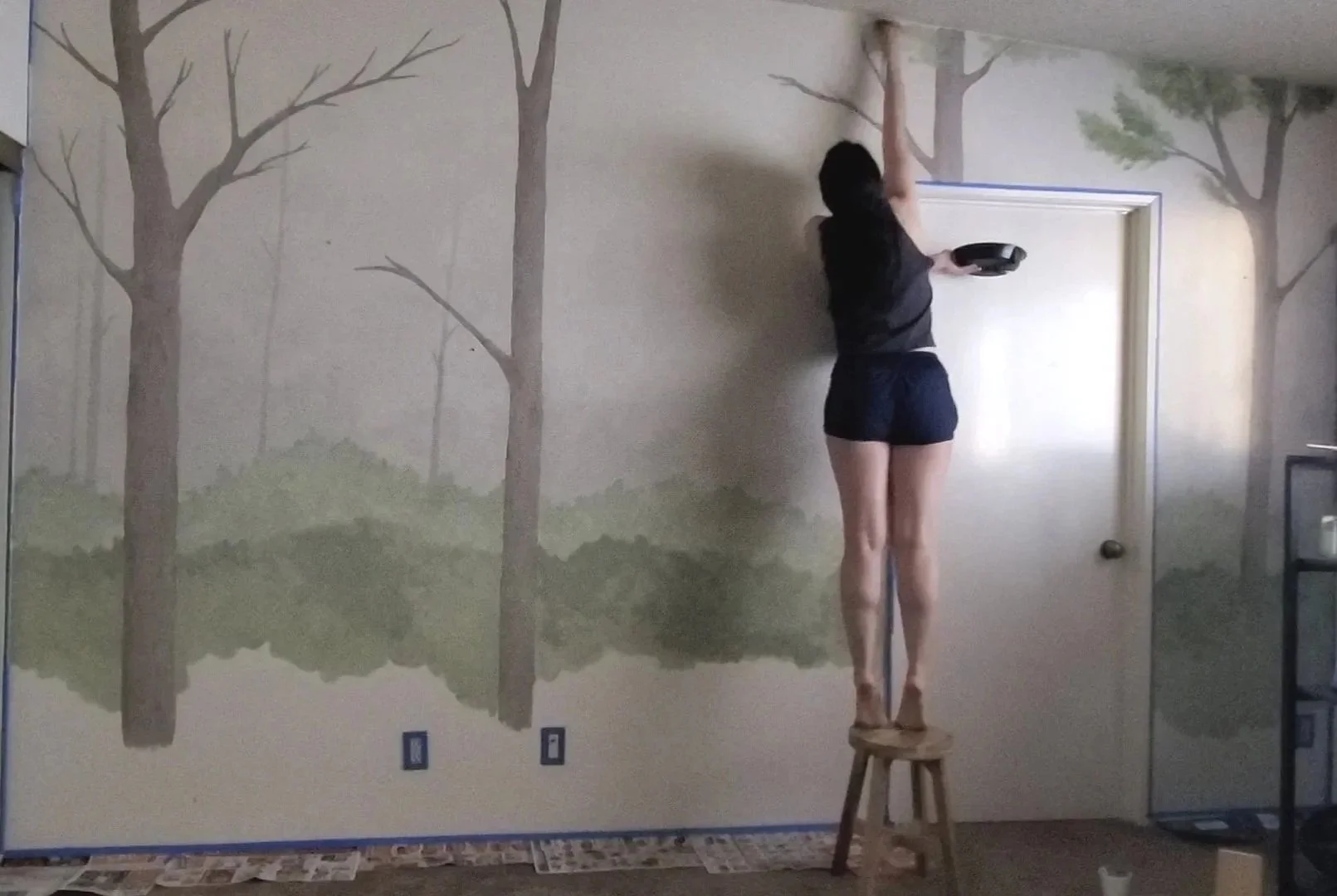 I thought, “why not make my room a little more whimsical?” And so with a can of interior paint found in our apartment’s closet mixed with my acrylics, I spent a weekend adding a little greenery to the apartment walls.